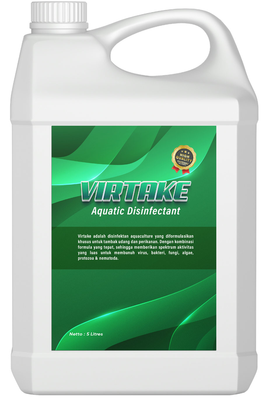 Virtake adalah disinfektan akuakultur berspektrum luas yang bekerja cepat membunuh mikroorganisme dan mencegah penyebaran penyakit sejak dini.