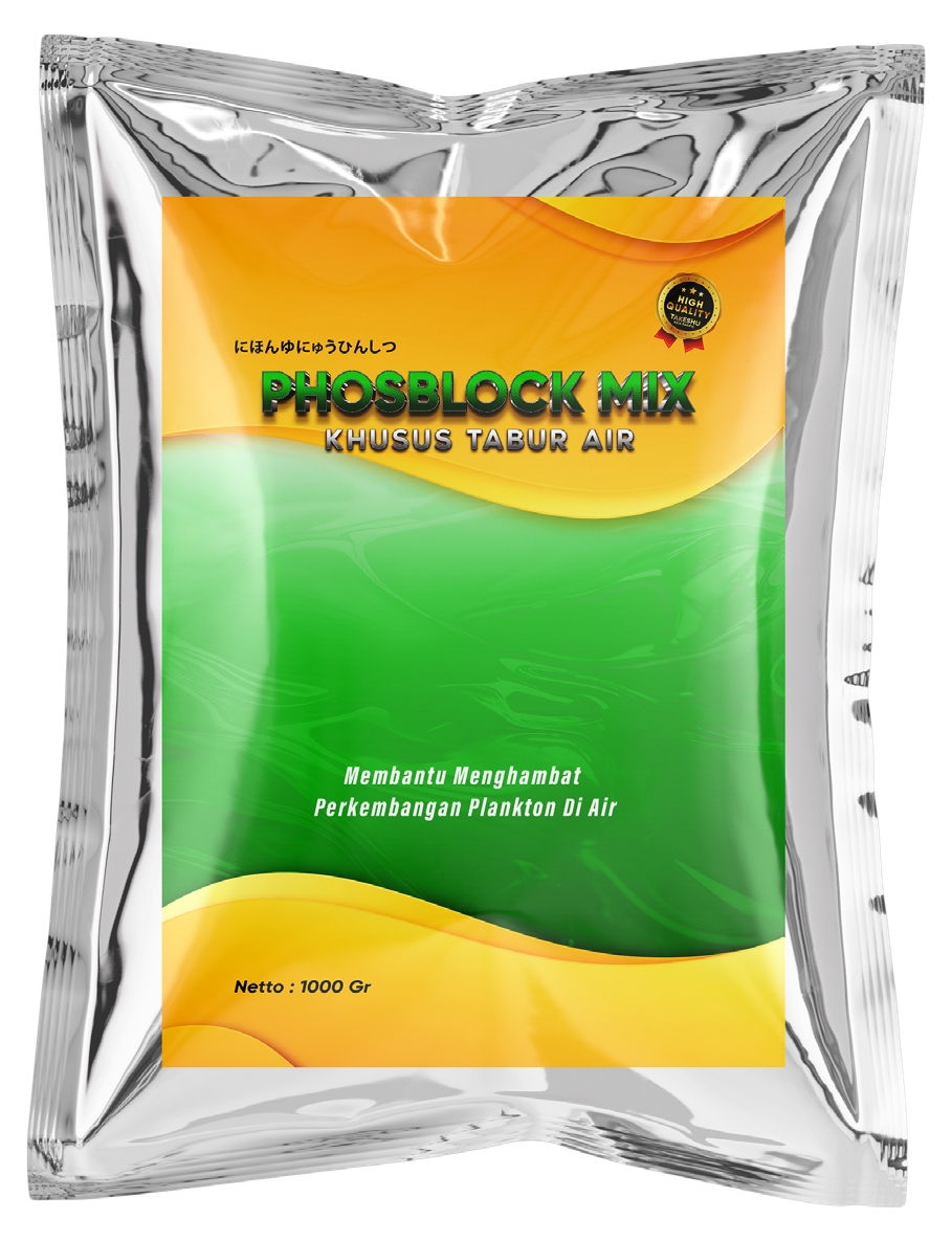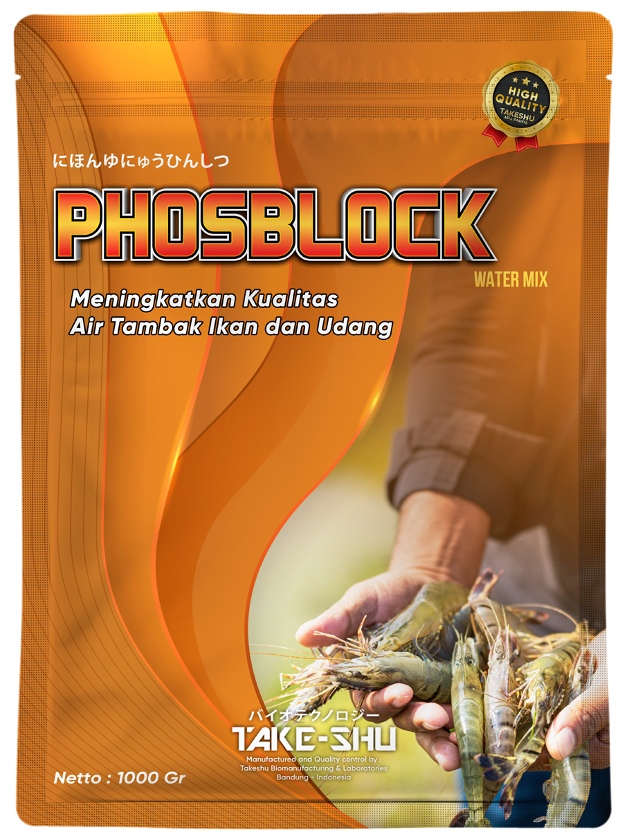 Phosblock dengan kandungan Actinobacteria sp. bekerja menghambat penyerapan ion fosfat oleh plankton, menstabilkan kualitas air, dan mencegah blooming sehingga lingkungan tambak lebih sehat.